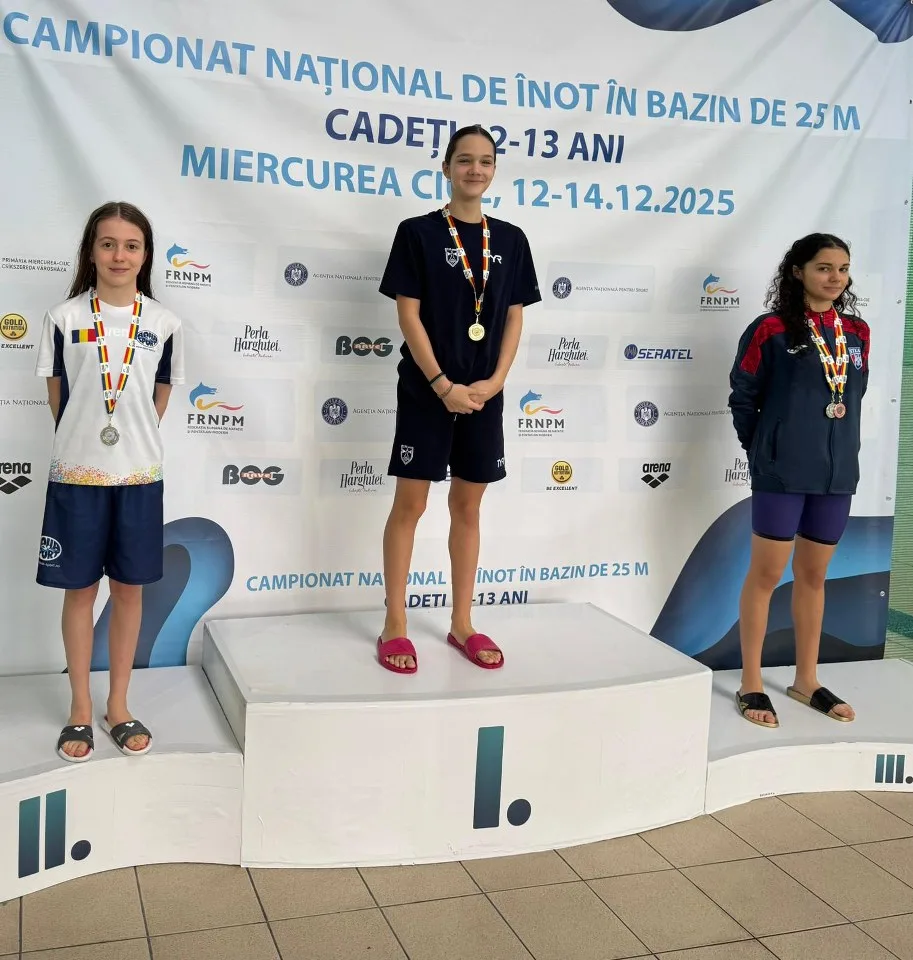 In perioada 12-14.12.2025, sportivii Aqua Sport au participat la Campionatul National in bazin scurt – Cadeti 13-14 ani, organizat de catre Federatia de Natatie si Pentatlon Modern – FRNPM la Bazinul Miercurea Ciuc.