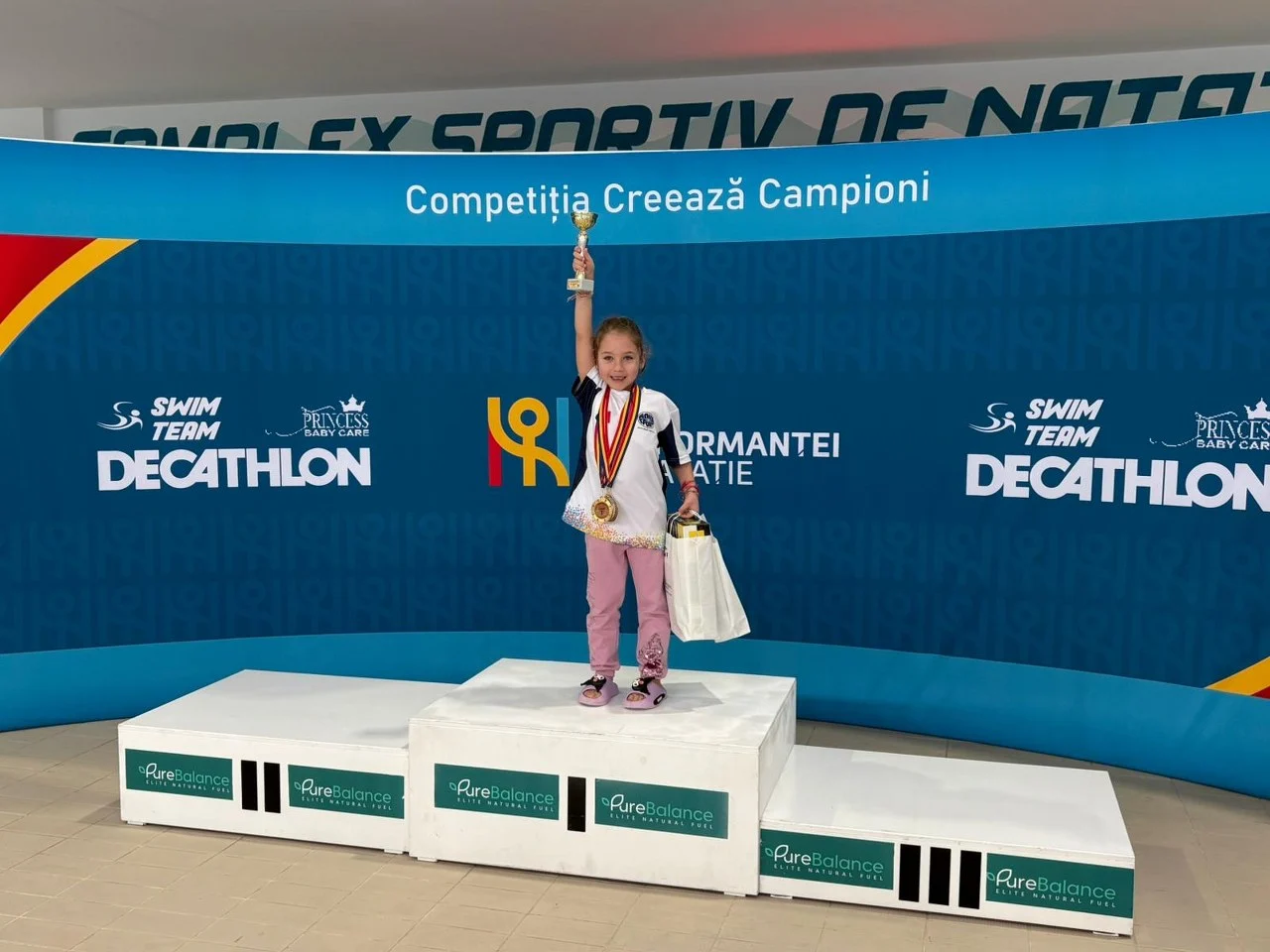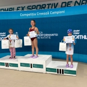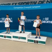 Andreea Stefania Dincă (antrenor Stefan Vieru) – 50 m picioare crawl, 50 m picioare spate copii 6 ani